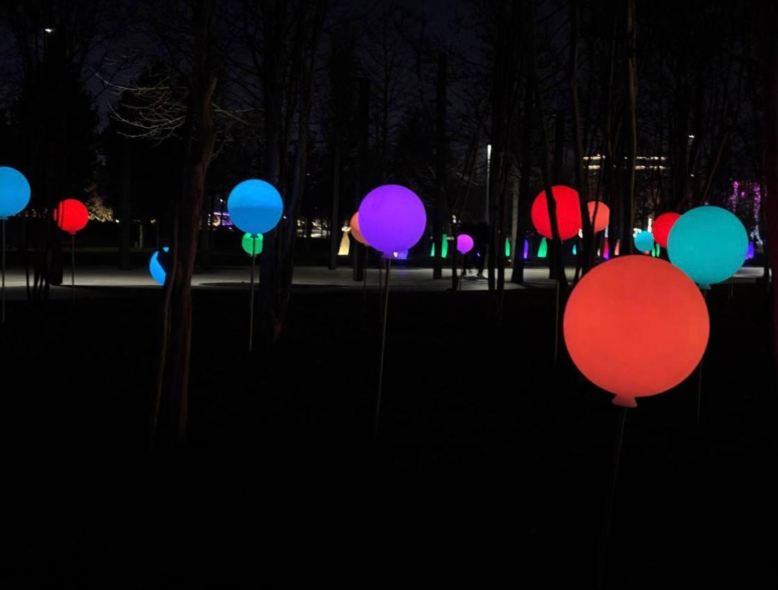 Десятки ярких шаров поднимают настроение посетителям.