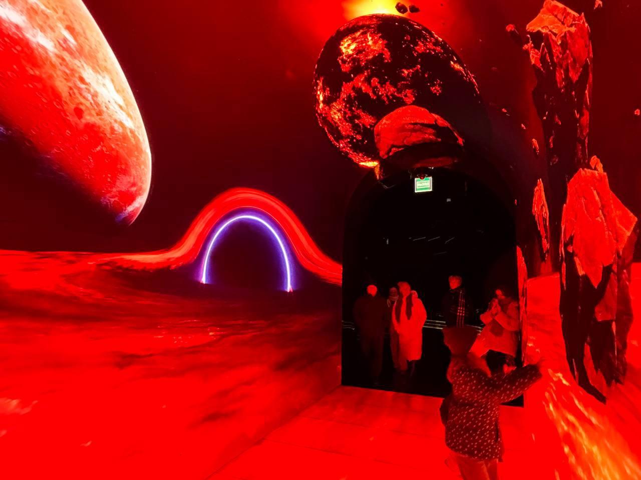 Инсталляция напоминает футуристический космический сюжет.