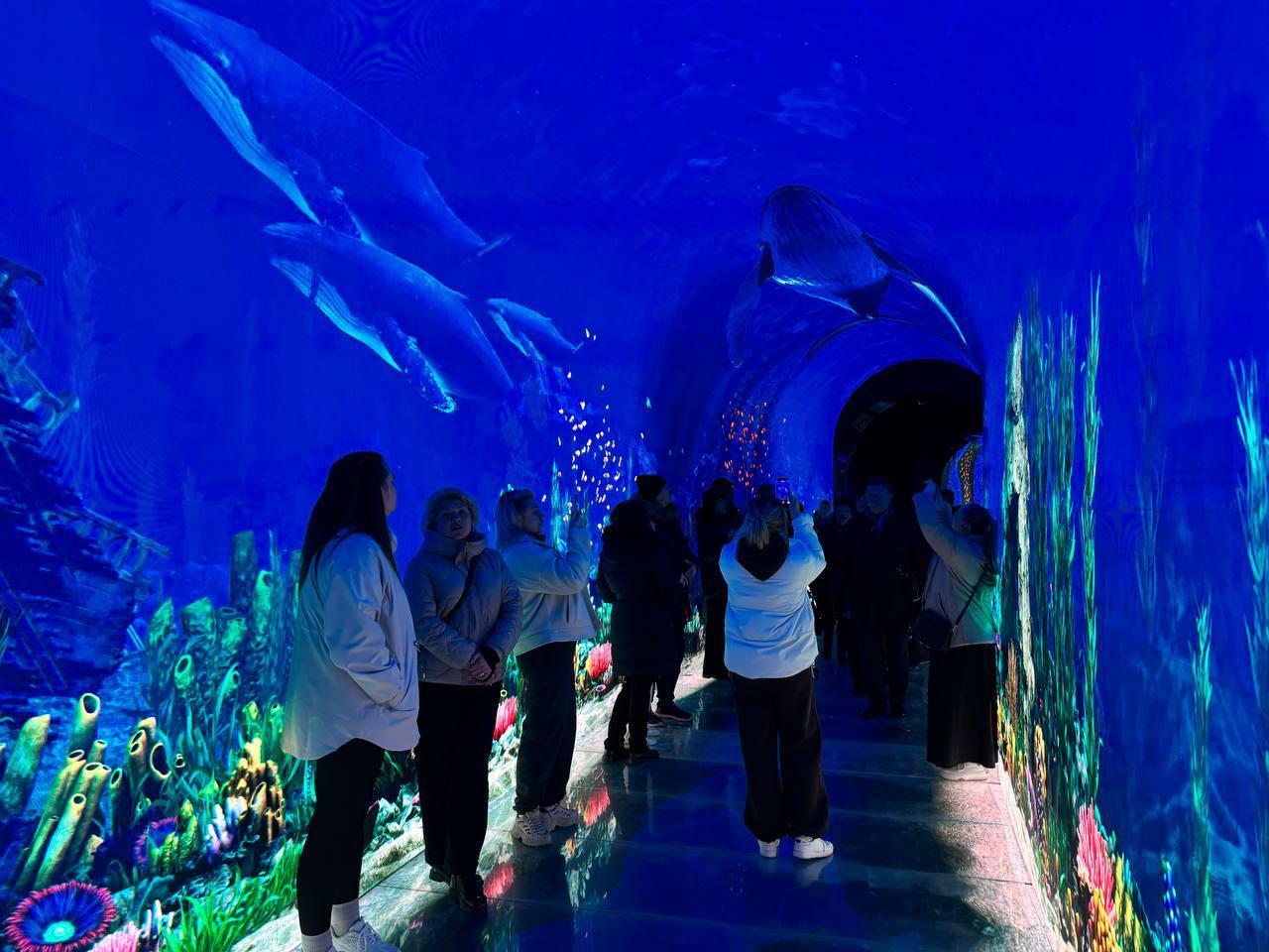Посетители могут наблюдать, как над головой проплывают силуэты китов.