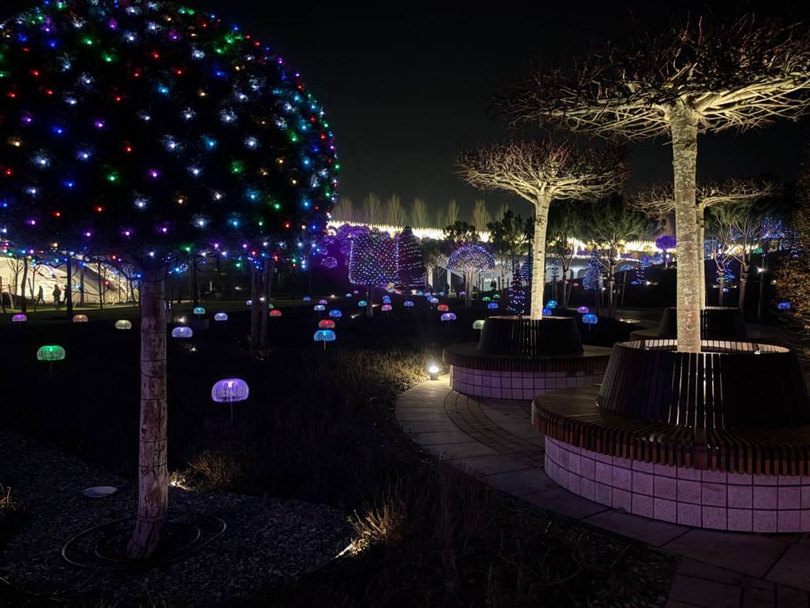 За каждым холмом посетителей встречают светящиеся деревья.