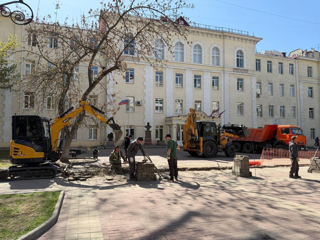 Замена тротуарного покрытия на улице Пушкинской оценивается в 1,7 миллиона рублей, завершение запланировано на середину мая.