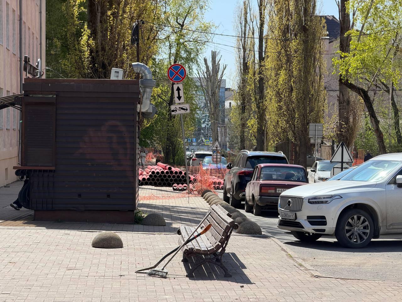 Улица в настоящее время перекопана из-за параллельного ремонта подземных коммуникаций. Обновление тротуаров, вероятно, напрямую связано с этими инженерными работами.