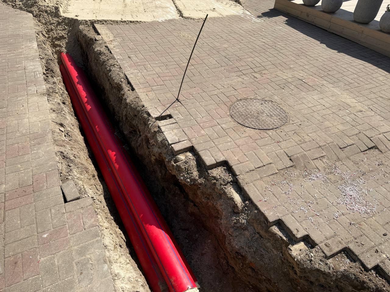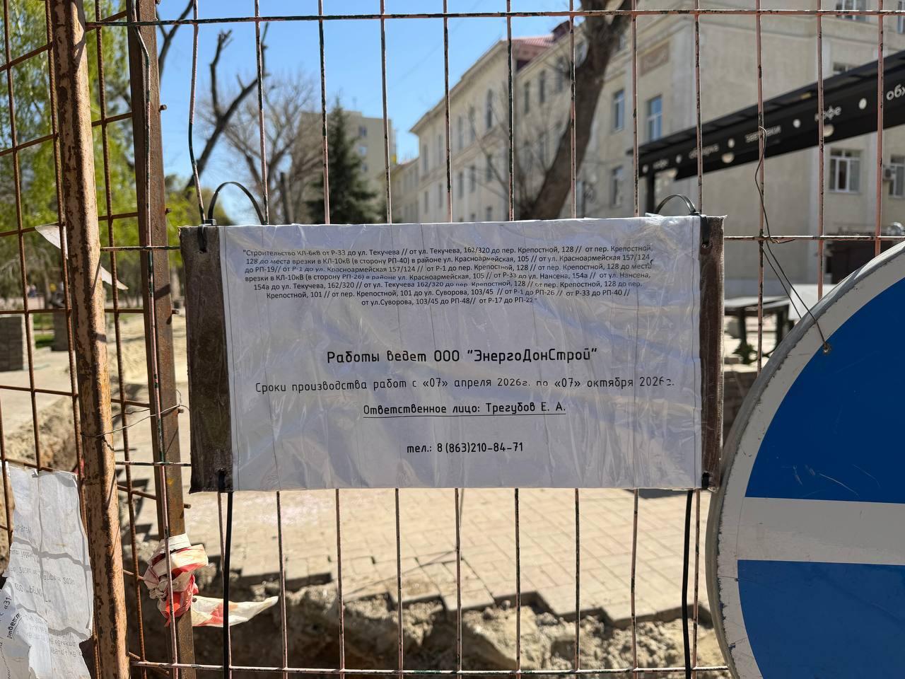 Отдельная зона работ организована около школы №80. Здесь с 7 апреля компания «ЭнергоДонСтрой» ведёт прокладку силового электрического кабеля. Данный проект продлится до 7 октября.