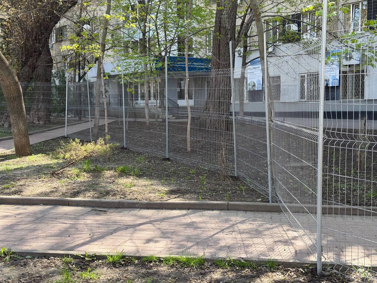Строительные ограждения также установлены на участке рядом с домом 143 по Пушкинской, где проводятся операции, связанные с водоканалом.