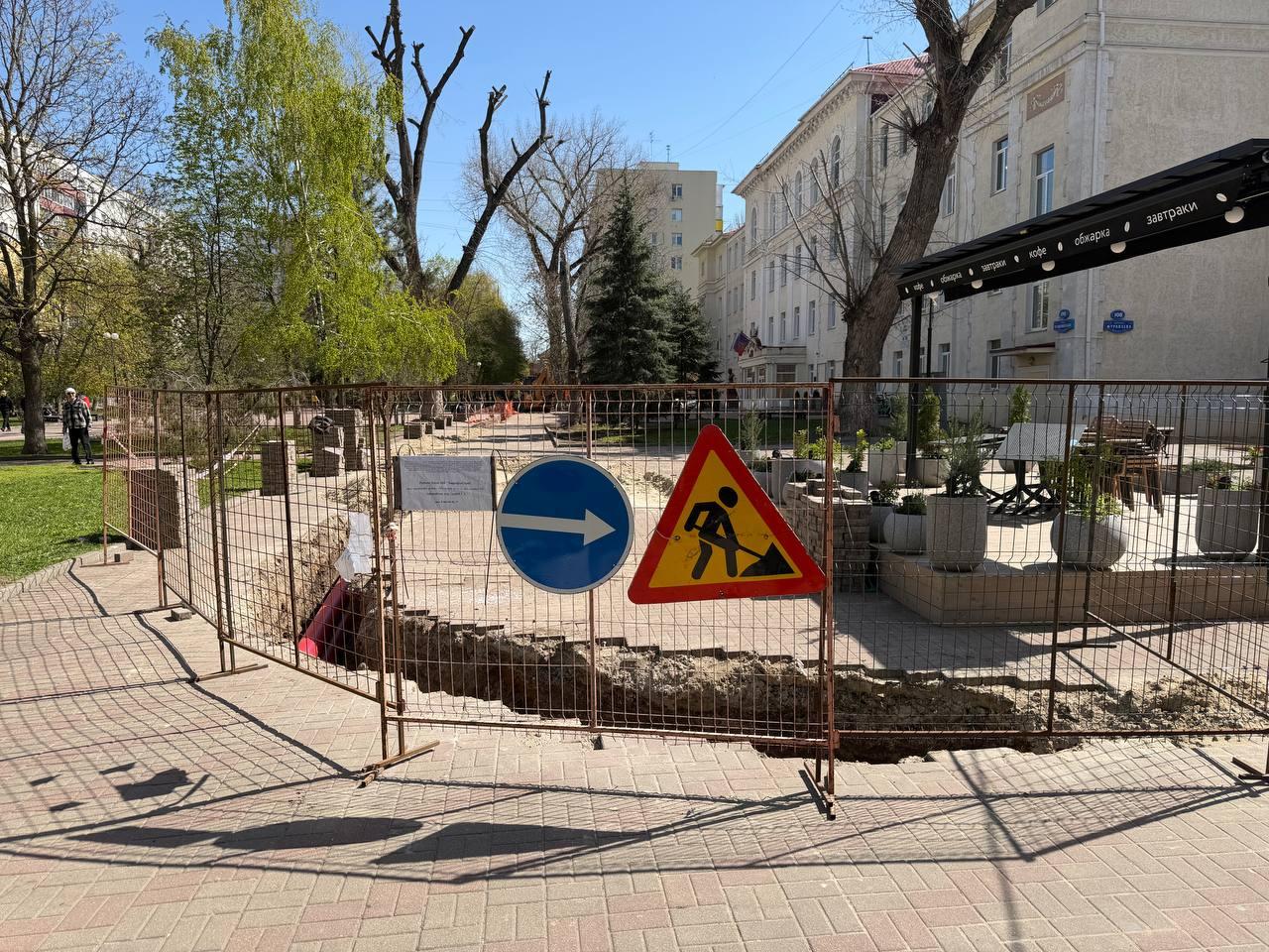 На улице Пушкинской идут масштабные работы, временно затрудняющие пешеходное движение.