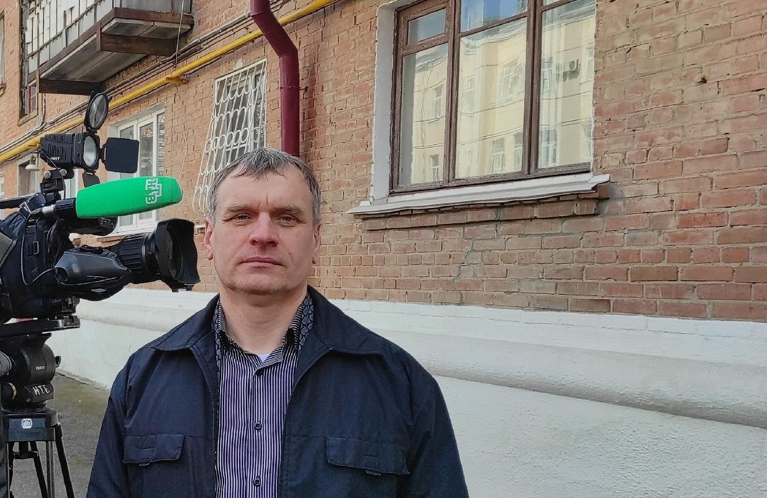Александр Андрющенко на фоне своего бывшего дома.