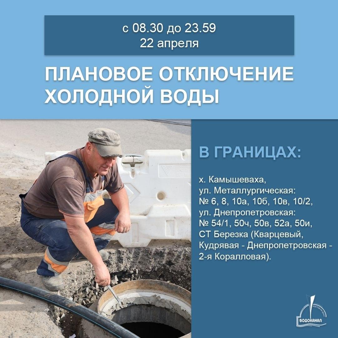 Холодное водоснабжение будет отсутствовать с утра 22 апреля в нескольких районах города из-за ремонтных работ.
