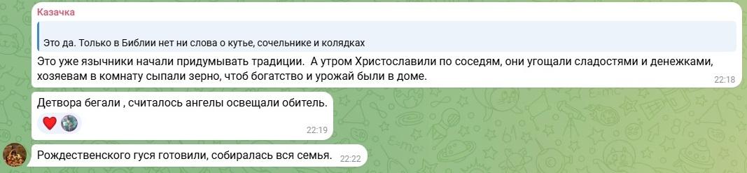 Пользователи поделились своими семейными обычаями в честь Рождества. Как выяснилось, для одних это важный религиозный праздник с обязательным посещением богослужения, а для других — просто дополнительный выходной день. В беседах также возникла дискуссия о том, насколько традиционным для этого дня является приготовление кутьи.