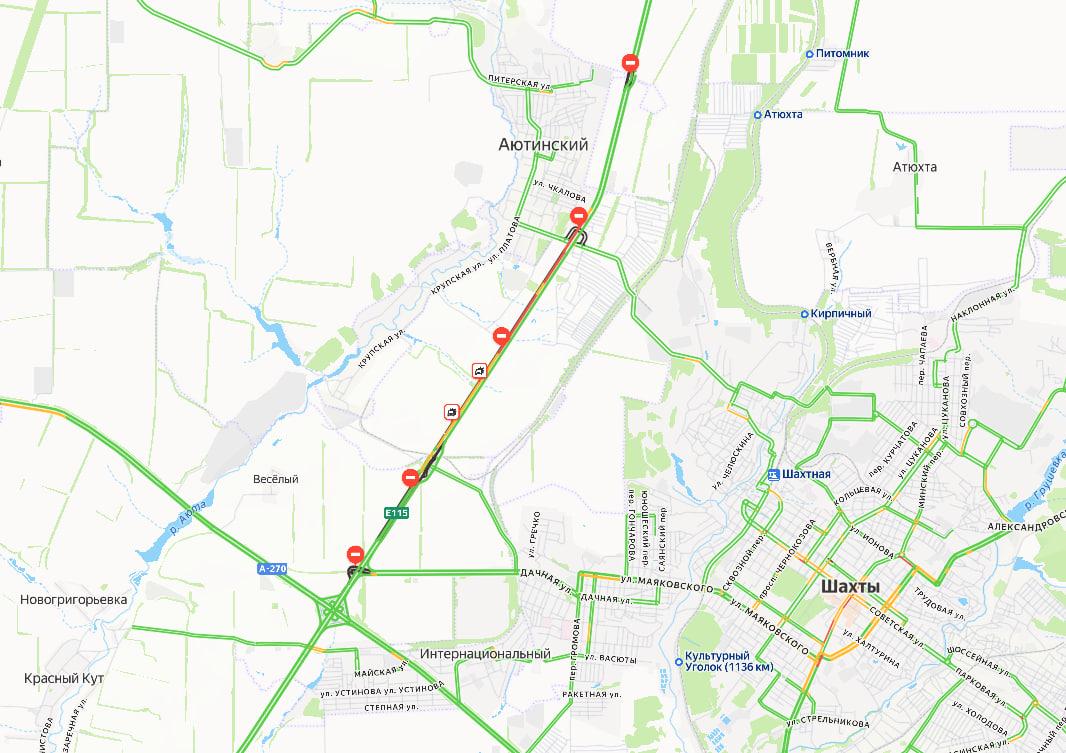Согласно информации с «Яндекс. Карт», авария на трассе М-4 «Дон» в Красносулинском районе привела к перекрытию трех полос движения по направлению к Ростову.