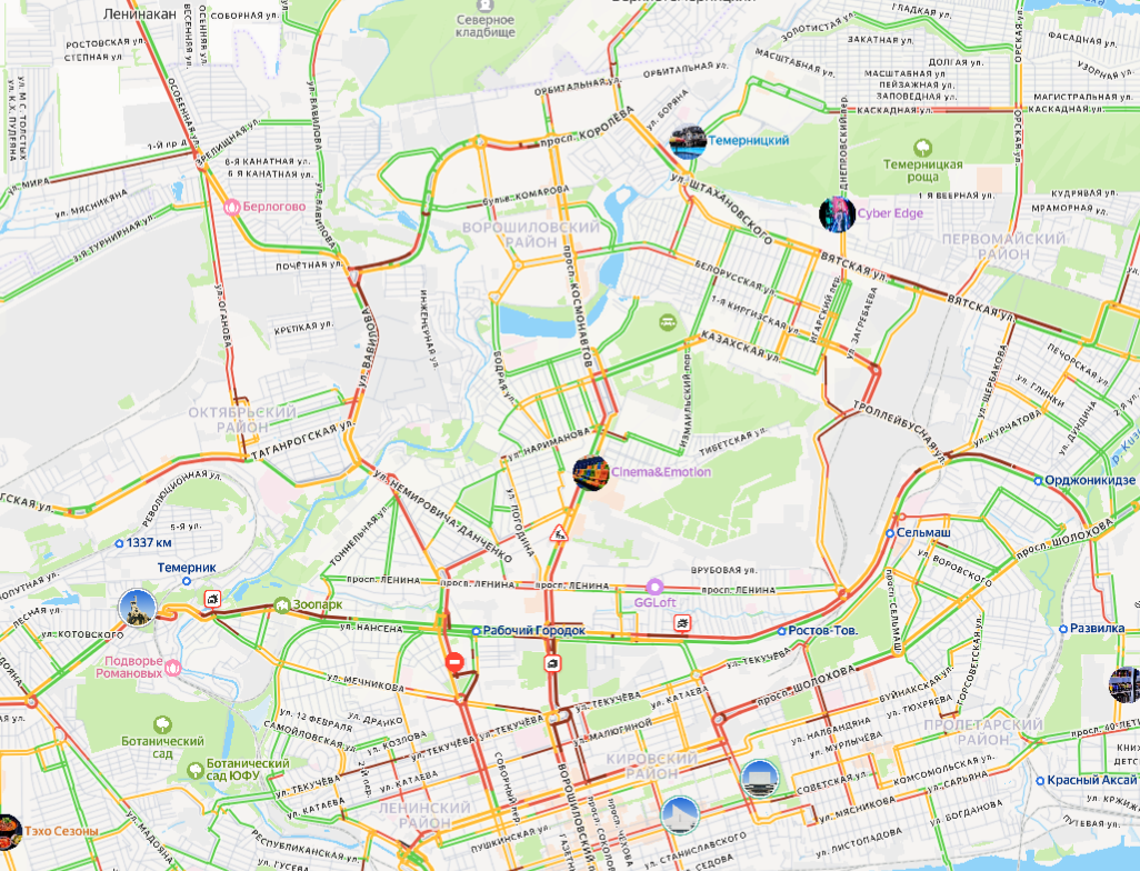 Заторы начали формироваться около 17 часов и быстро распространились по различным районам. В числе наиболее пострадавших оказались центр, Западный жилмассив, Сельмаш и Нахичевань. Серьезные затруднения также зафиксированы на улицах Нагибина и Нансена.