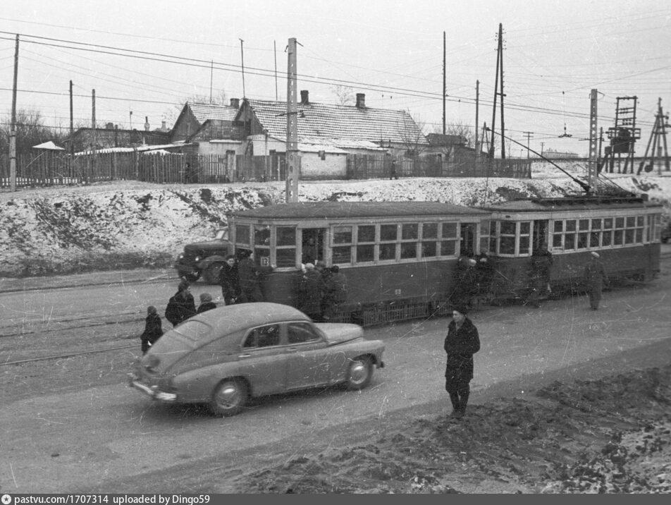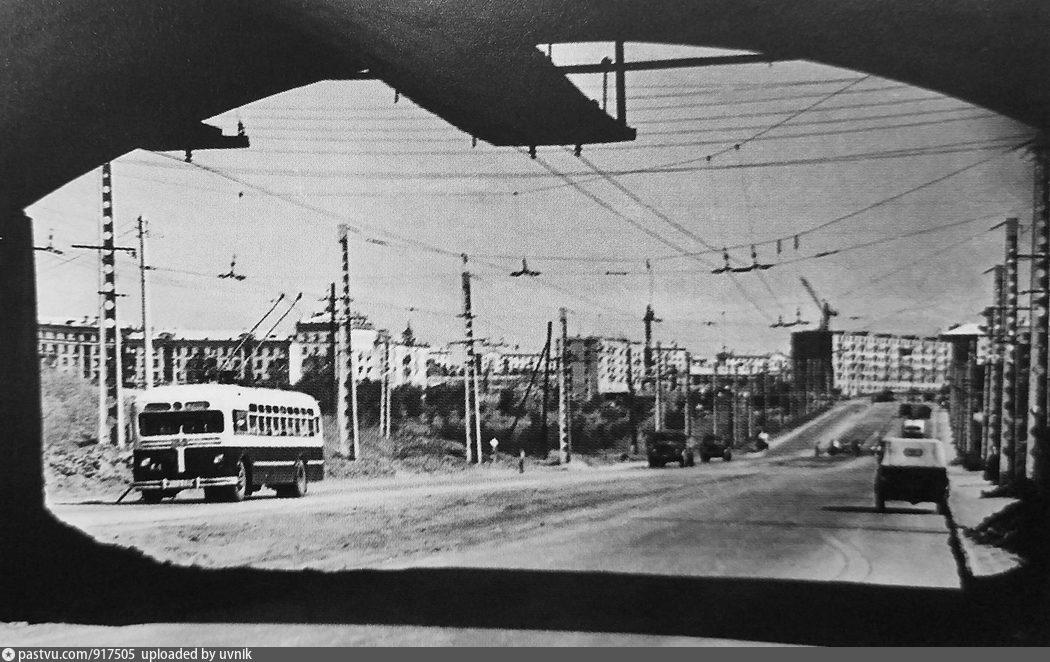1960–1961 годы. Северный проспект — так в то время именовался нынешний проспект Нагибина. Фото сделано в районе Турмалиновской улицы. Здание на фоне сохранилось до настоящего времени.