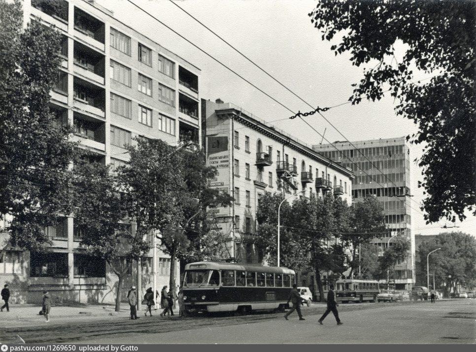 Троллейбус модели ЗиУ-682Б на Лекальной улице в 1974–1975 годах.